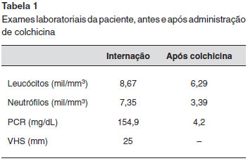Outra ferramenta diagnóstica é a prova terapêutica. Para isto, medicamentos bloqueadores inespecíficos de citocinas sao utilizados. Em manifestaçoes graves ou com perda de funçao de órgaos vitais (coraçao, olho, pulmao, rim e SNC) administramos glicocorticoides em doses elevadas, que variam de 1 mg/kg/dia (dose imunossupressora) até doses de pulsoterapia (1 g/dia por 3 a 5 dias) até resoluçao do quadro. Em casos mais leves, utilizamos glicocorticoides em doses menores, 0,5 mg/kg/dia (dose anti-inflamatória), ou utilizamos anti-inflamatórios que atuem em células da imunidade inata, principalmente neutrófilos. Os principais anti-inflamatórios nao glicocorticoides disponíveis sao a colchicina (dose mínima de 1 mg/dia) e a indometacina (100 mg/dia). Outro fato é que estes pacientes nao apresentam resposta satisfatória com bloqueadores de células T e B (cloroquina, metotrexato, azatioprina ou ciclofosfamida), pois, por definiçao, estas doenças nao apresentam participaçao de imunidade adaptativa e nao têm linfócito T autorreativos20. Neste caso a paciente nao apresentava manifestaçao grave e apresentou resposta satisfatória e sustentada com bloqueadores da migraçao neutrofílica, a colchicina, que foi prescrita em dose adequada.