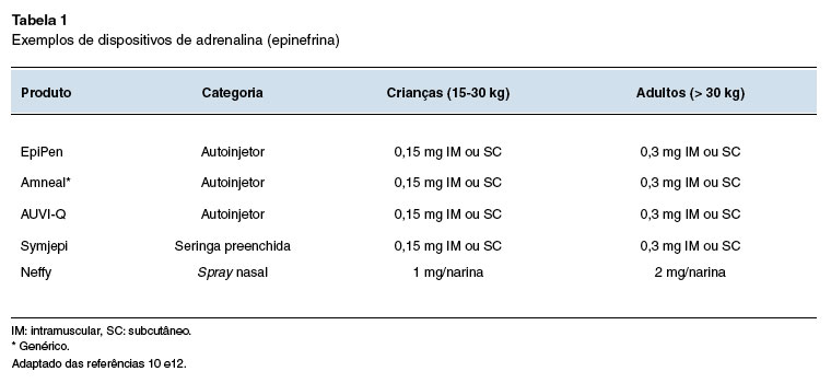 Outra forma de apresentação da adrenalina é a seringa preenchida (Symjepi), também aprovada pela FDA, porém não disponível no Brasil (Tabela 1). Ela exige que o usuário injete manualmente a agulha e pressione o êmbolo, o que pode ser difícil para alguns pacientes, especialmente crianças11.